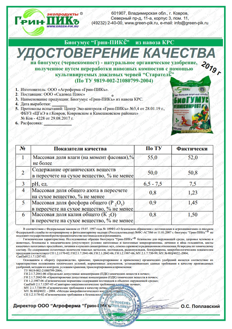 — Биогумус обеспечивает стабильный высокий экологически чистый урожай.